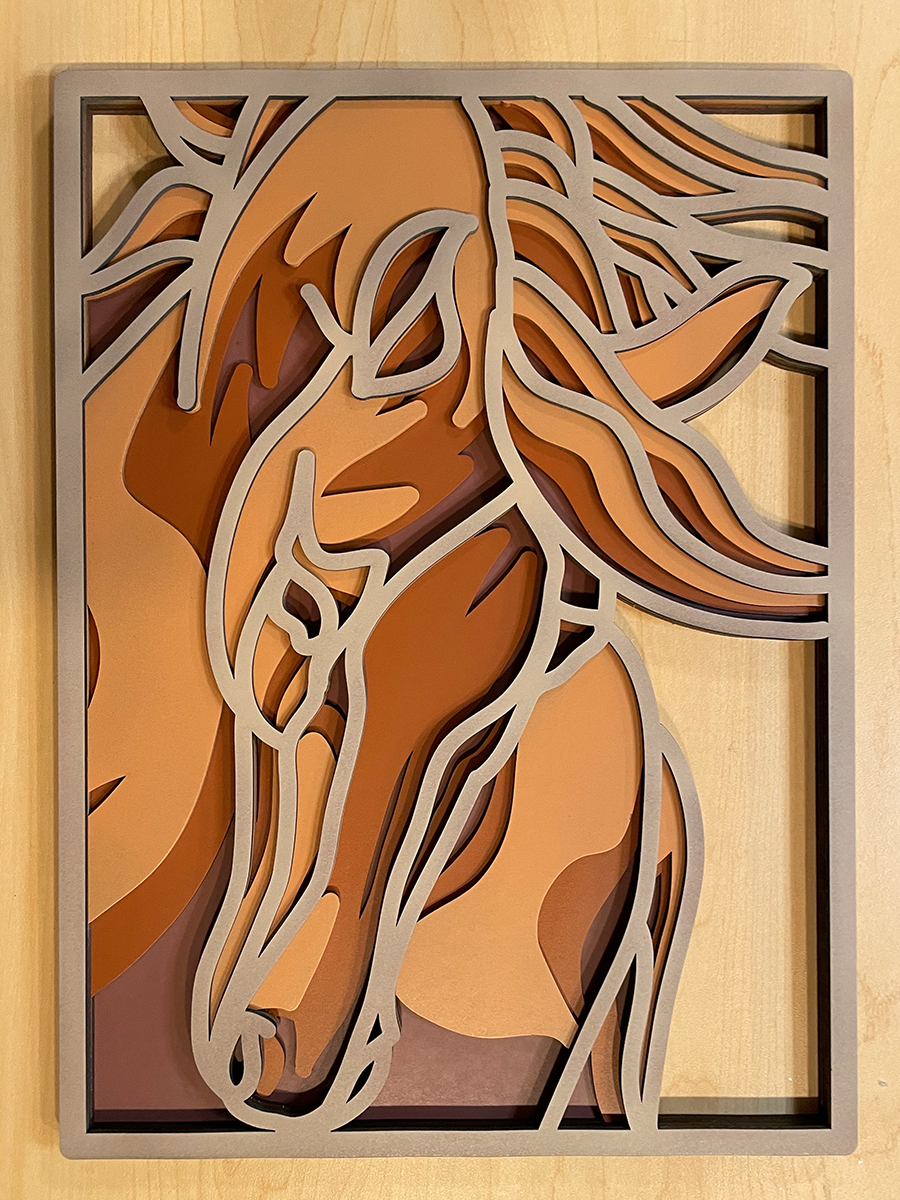 4 layered horse on 3mm board airbrushed with acrylic paint.