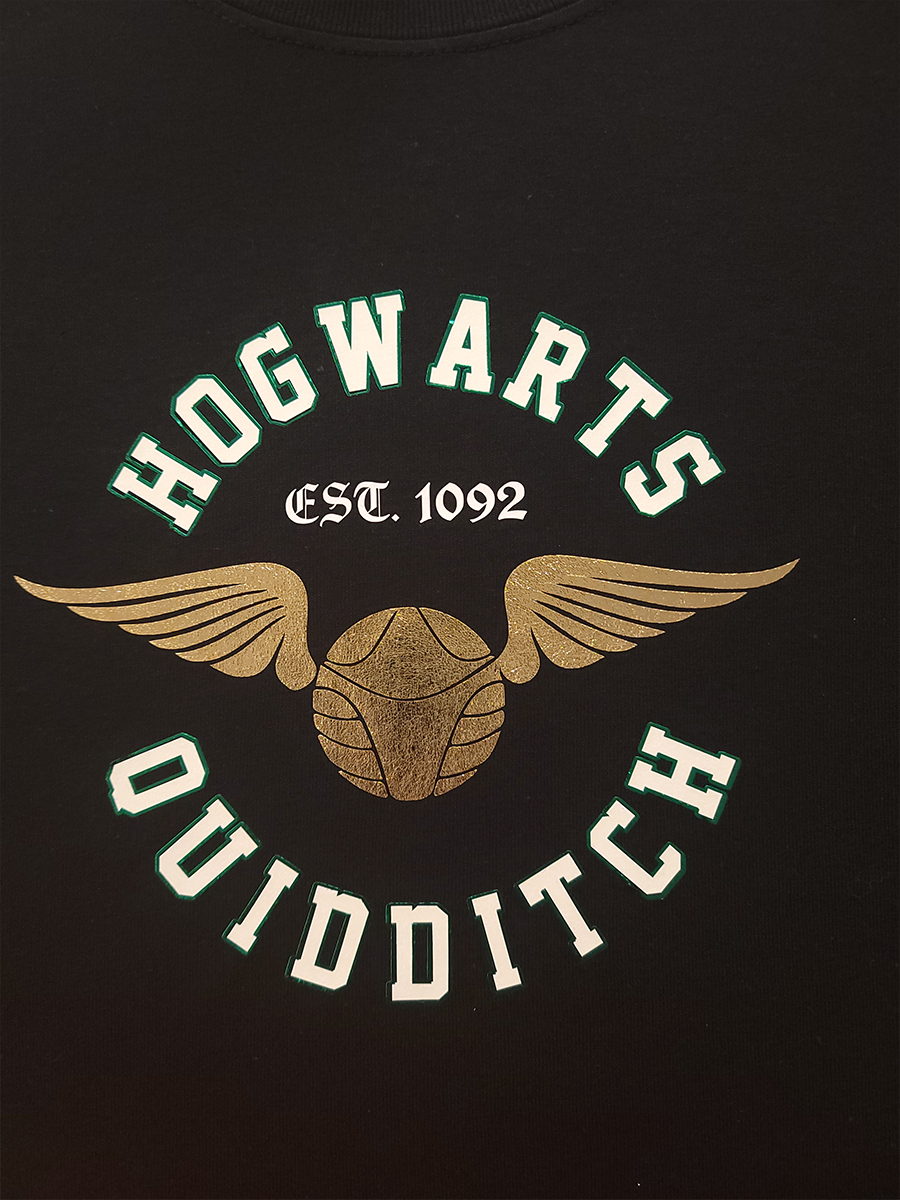 Vinyl T-shirt with glitter and metallic vinyl.