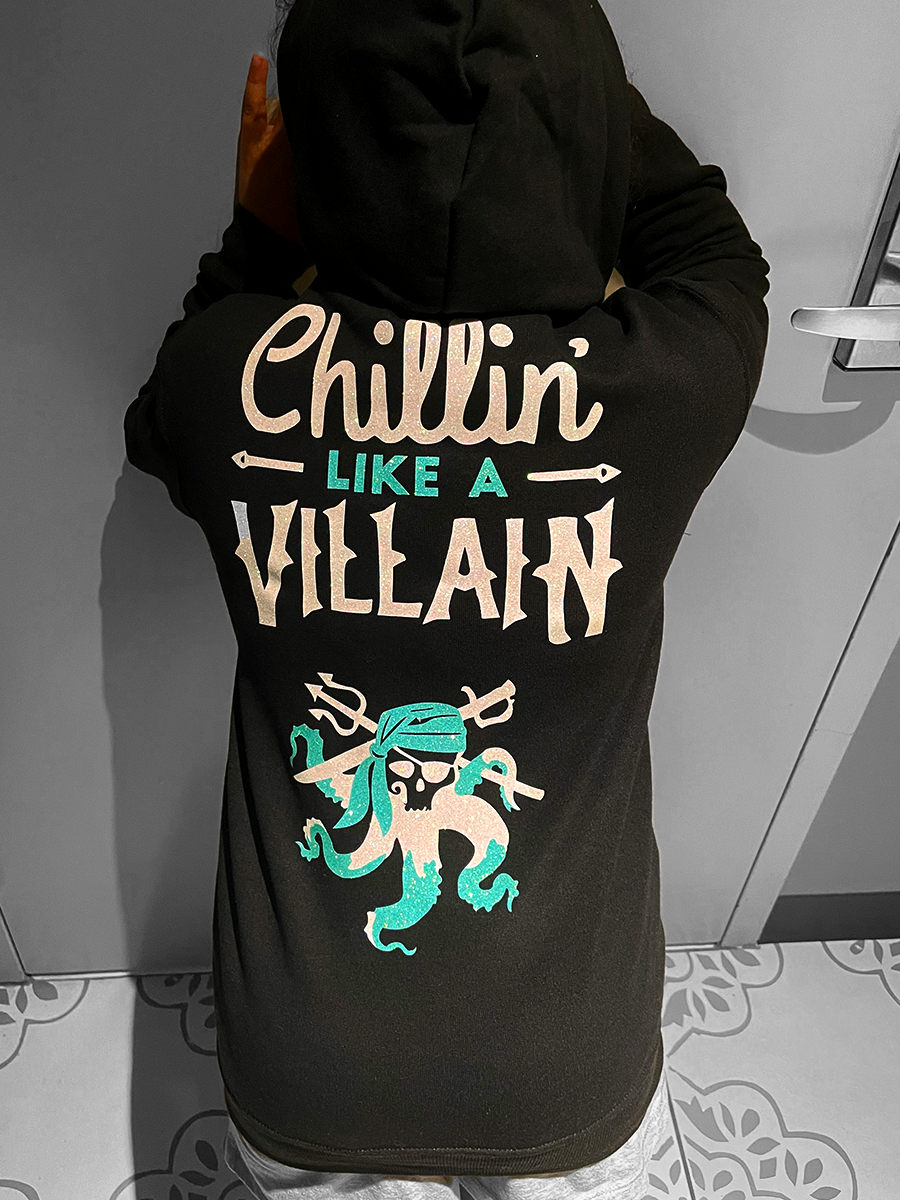 Glitter vinyl on zippered hoodie.